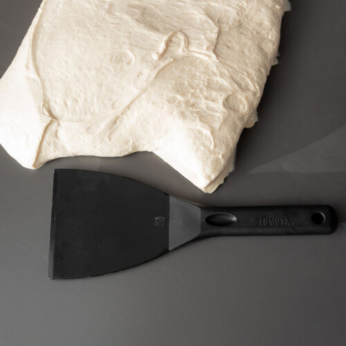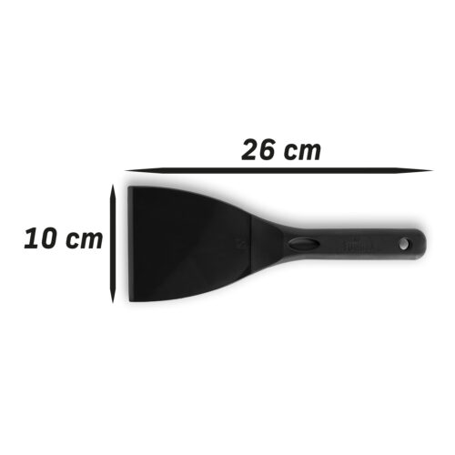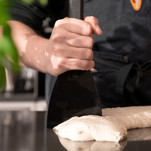 Da der Spachtel vollständig aus lebensmittelechtem Polymer gefertigt wird, ist er widerstandsfähig und spülmaschinengeeignet. Zudem wird deine Teigkiste – anders als bei einem Metallspachtel – nicht durch Kratzer beschädigt. Weitere Vorteile sind die Öse zum Aufhängen sowie die Daumen-Einkerbung für mehr Ergonomie. Der Spachtel hat eine Breite von 10 cm (ideal für Teiglinge bis zu 300 g) und ist in den Farben anthrazit und orange erhältlich