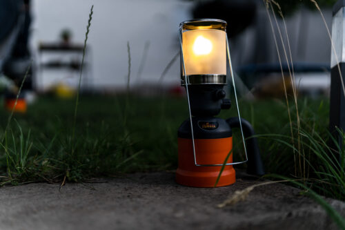Die FUMOSA Gaslampe mit Piezozündung ist ideal, wenn du beim Campen nicht auf eine stimmungsvolle Beleuchtung verzichten willst. In der Gaslampe dient ein Glühstrumpf als Leuchtmittel, welcher ein besonders warmes Licht spendet – ideal, wenn du kein Freund von kaltem LED-Licht bist. Dabei hat die Campinglampe gleich mehrere Funktionsweisen: sie kann entweder stehend oder hängend verwendet werden, auf Grund des klappbaren Henkels mit einer Höhe von ca. 22 cm. Im stehenden Zustand sorgt der tiefe Schwerpunkt und die recht großzügige Auflagefläche für einen sicheren Stand. Besonders clever: die FUMOSA Gaslampe kann dank des Henkels auch als Laterne für einen nächtlichen Spaziergang auf dem Zeltplatz dienen.