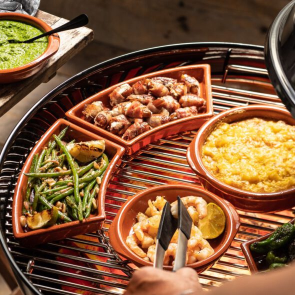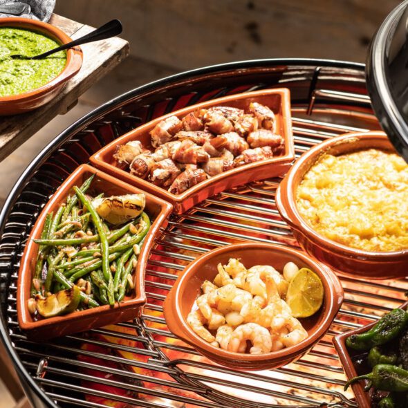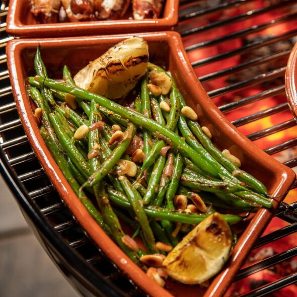 Die Keramikschale eignet sich bestens zum Grillen, Braten, Backen und Kochen – gleichzeitig ist die Zubereitung in der »RONDA« besonders schonend und lecker, da Vitamine im Essen erhalten bleiben und sich Aromen optimal entfalten können. Durch die Hitze im Grill oder Ofen entweicht das in den Poren gespeicherte Wasser allmählich als Dampf, der das Gargut saftig und schmackhaft erhält. Die Grillschale »RONDA« eignet sich aber auch zum Servieren von heißen und kalten Vorspeisen.