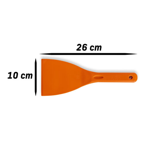 Da der Spachtel vollständig aus lebensmittelechtem Polymer gefertigt wird, ist er widerstandsfähig und spülmaschinengeeignet. Zudem wird deine Teigkiste – anders als bei einem Metallspachtel – nicht durch Kratzer beschädigt. Weitere Vorteile sind die Öse zum Aufhängen sowie die Daumen-Einkerbung für mehr Ergonomie. Der Spachtel hat eine Breite von 10 cm (ideal für Teiglinge bis zu 300 g).