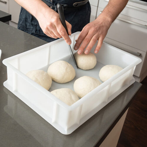 - Die Pizzaballen-Box eignet sich auch für das Aufbewahren der fertig geformten Teiglinge (Stückgare)