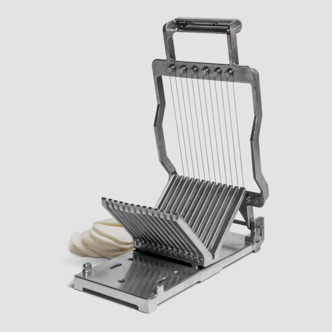 Für Mozzarella und Fior di Latte FUMOSA Profi Mozzarellaschneider Dieser Schneider von FUMOSA ist genau das richtige Tool, wenn es darum geht Mozzarella oder Fior di Latte bequem in Scheiben, Streifen, oder Würfel zu schneiden (max. Schnittstärke: 9,5 mm). Dabei sind der Rahmen des Mozzarellaschneiders aus langlebigem Aluminiumguss und die Schneidedrähte aus Edelstahl gefertigt. Natürlich…